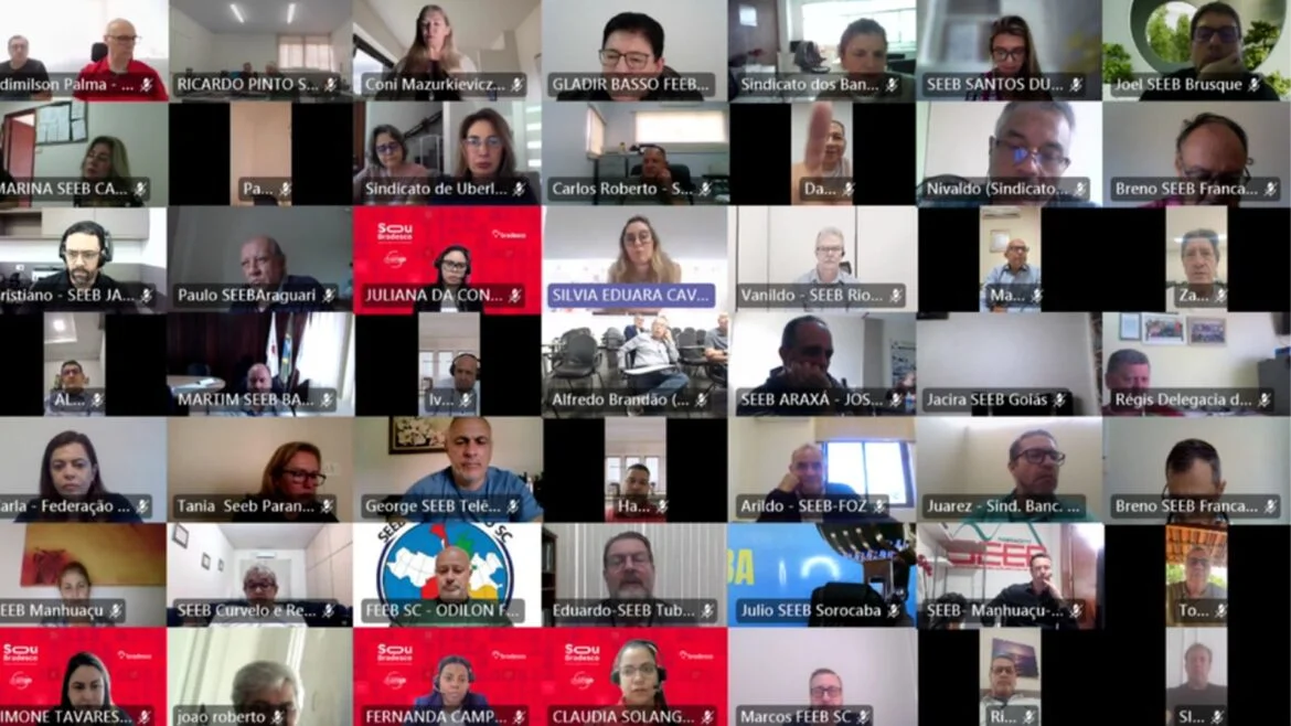 Na manhã de sexta-feira (31/10/25), a Comissão de Organização dos Empregados do Bradesco (COE-Bradesco/CONTEC) realizou reunião virtual com Representantes do Banco Bradesco. O encontro foi definido entre o Coordenador da COE-BRADESCO/CONTEC, Gladir Basso, a Gerente do Departamento de Recursos Humanos do Bradesco, Sílvia Eduara Cavalheiro além da equipe de Relações Sindicais do Banco, e tratou de três eixos: Renovação e Modernização do Sistema de Ponto, Encaminhamentos sobre a Comissão de Conciliação Voluntária (CCV) e Demandas Específicas do Bradesco Financiamentos.