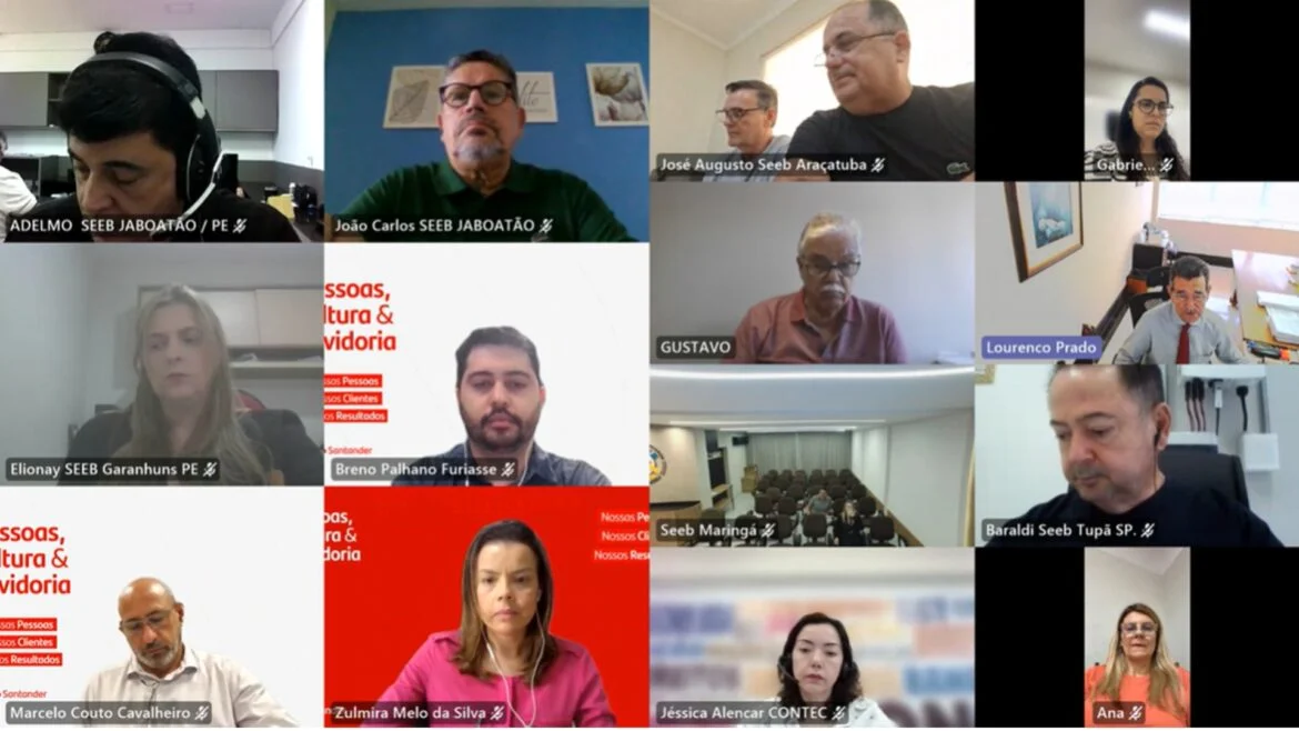 A Confederação Nacional dos Trabalhadores nas Empresas de Crédito (CONTEC) participou, nesta terça-feira (18/12/25), de mais uma reunião da Comissão de Organização dos Empregados (COE) CONTEC/SANTANDER, realizada de forma virtual, com a presença de Dirigentes Sindicais de diversas Regiões do País e Representantes do Banco.